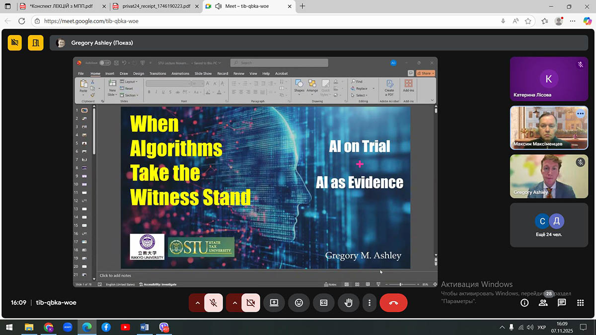 This event marked another step in expanding the international academic cooperation of the State Tax University and deepened students’ understanding of the contemporary legal dimensions of artificial intelligence technologies.