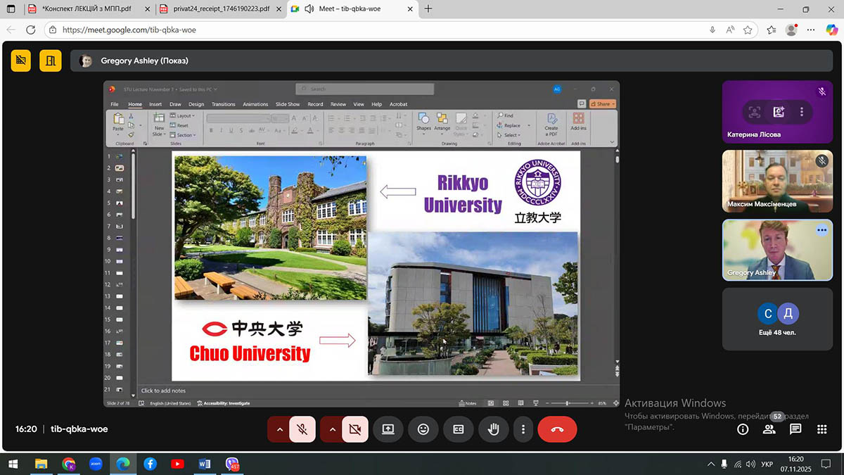 On November 7, the State Tax University hosted an online guest lecture by Gregory Ashley, an American lawyer and Professor of Law at Rikkyo University (Tokyo, Japan).