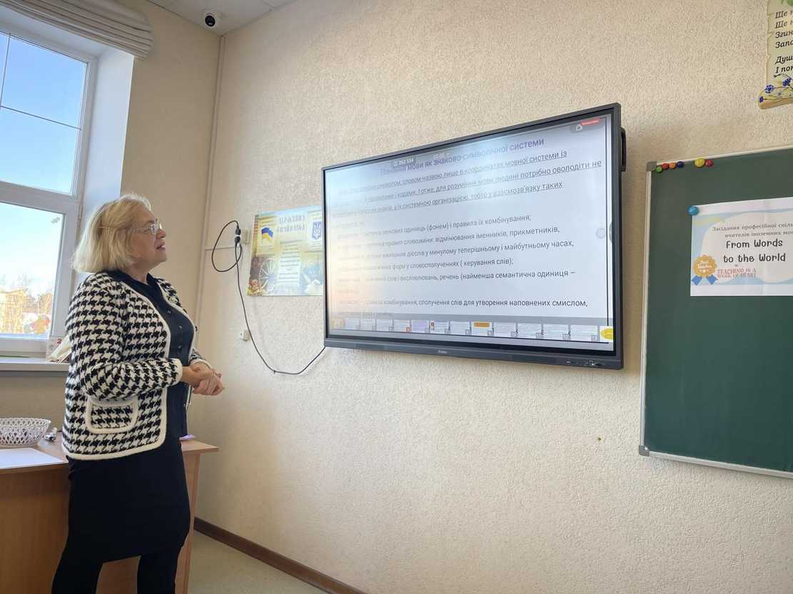 The speaker of the event was Natalia Lavrychenko, Doctor of Pedagogical Sciences and Professor of the Department of Foreign Languages at the State Tax University, who presented modern scientific approaches to developing linguistic giftedness, effective pedagogical strategies for working with gifted children, and practical tools for supporting students’ language abilities.