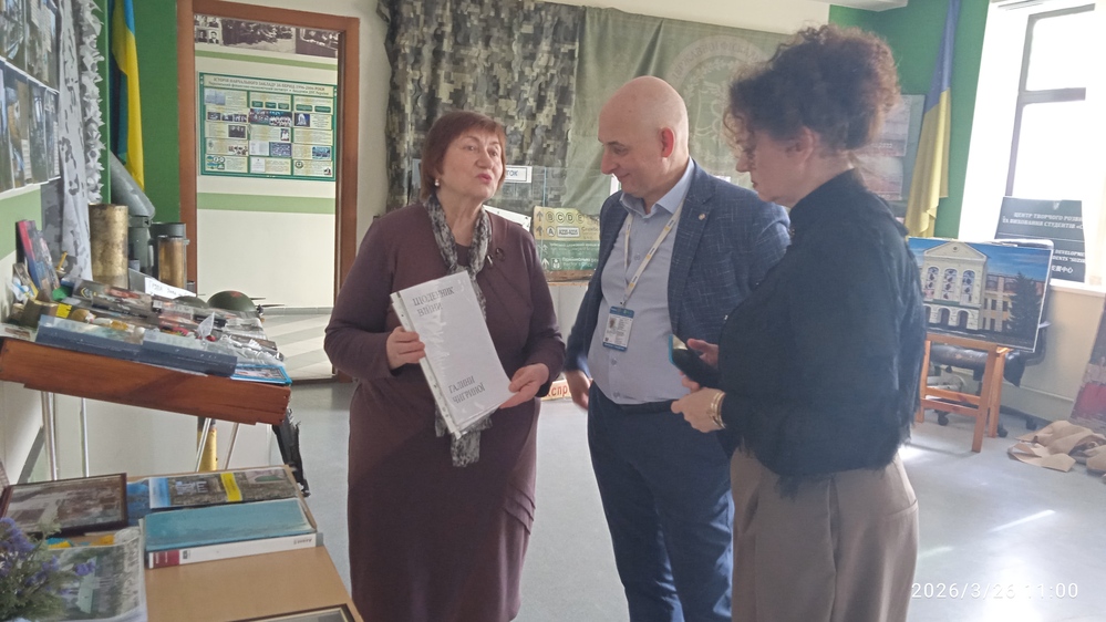 У Музеї історії університету відбулася змістовна та емоційно насичена екскурсія для поважних гостей - координатора Ліги амбасадорів фінансової грамотності Сергія ІВАГЛО та начальника відділу дошкільної, загальної середньої, позашкільної освіти, виховної роботи та охорони дитинства департаменту освіти і науки виконавчого комітету Криворізької міської ради Дніпропетровської області Вікторії ПОЛЯКОВОЇ. Захід пройшов у межах фіналу Національного турніру FinGame_UA2026, що проходив у Державному податковому університеті.