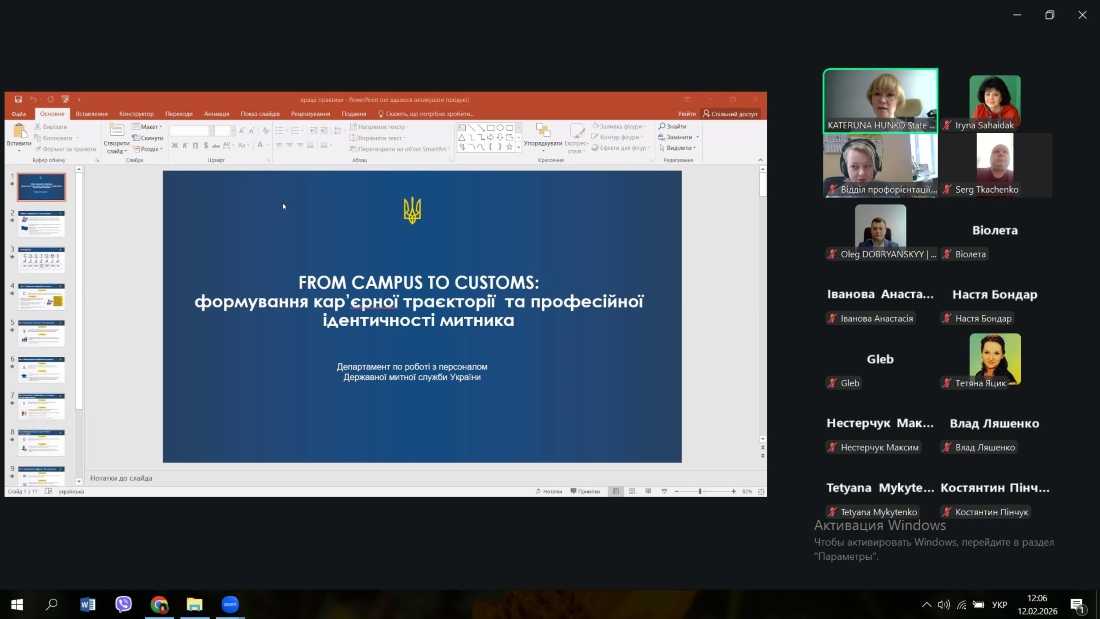 12 лютого 2026 року студенти та науково-педагогічні працівники кафедри митної справи та товарознавства взяли участь в онлайн-зустрічі, присвяченій питанням професійного становлення та кар’єрного розви...