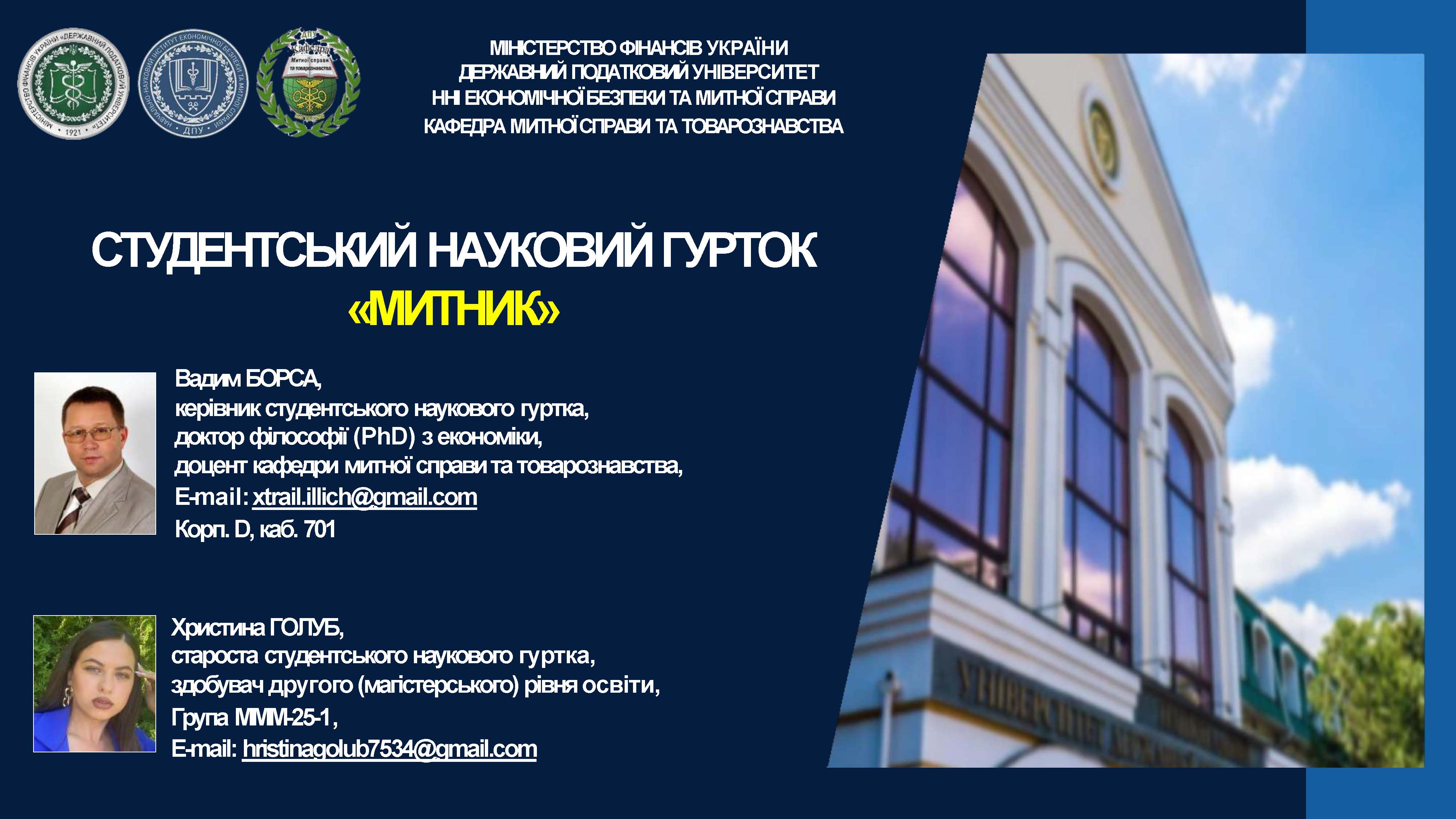 Керівник гуртка: доктор філософії з економіки (PhD), доцент Борса Вадим Вікторович