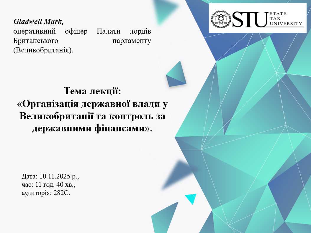 Кафедра обліку та аудиту запрошує всіх бажаючих відвідати міжнародну гостьову лекцію на тему: «О рга нізація державної влади у Великобританії та контроль за державними фінансами ».