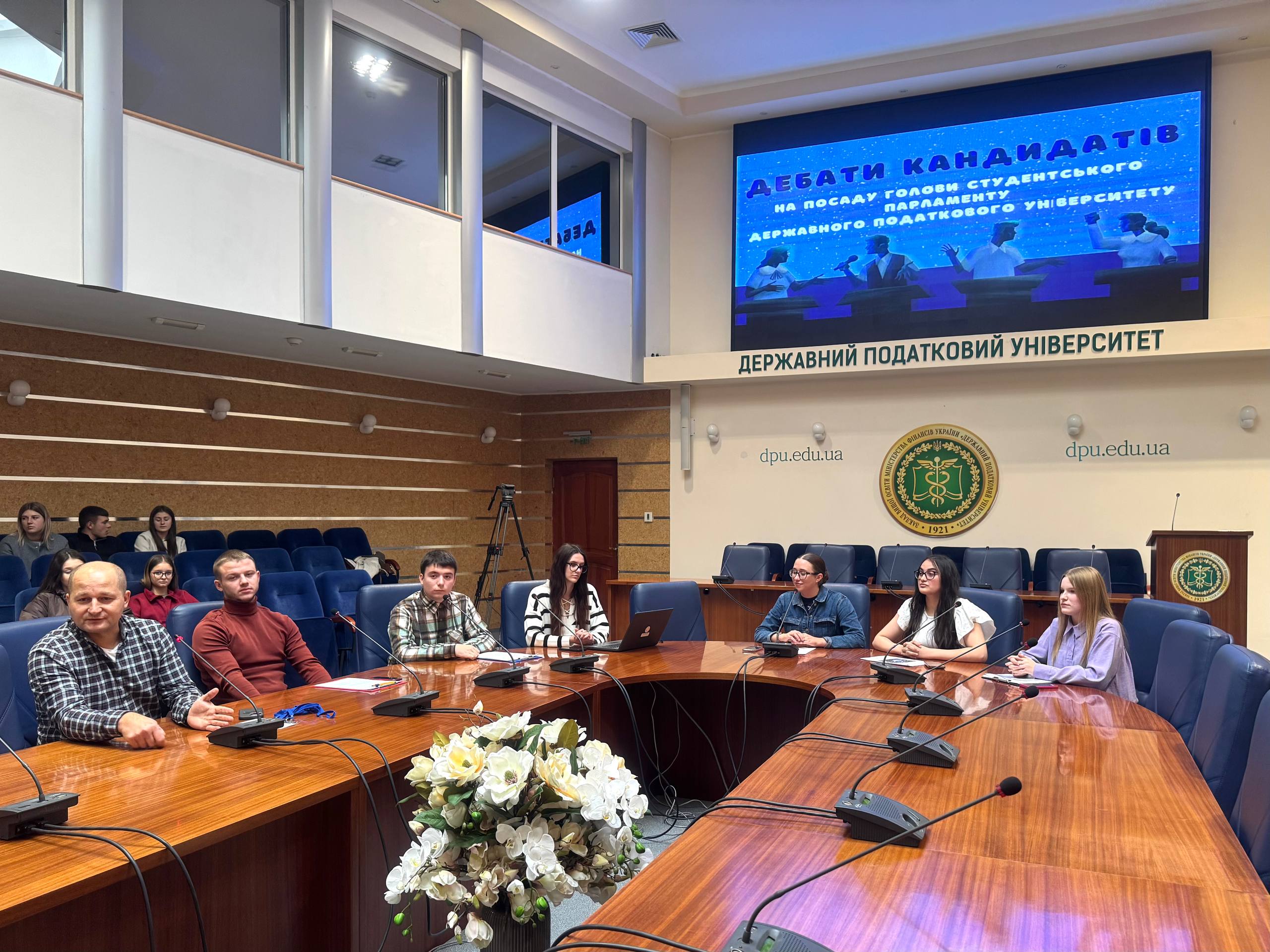 Сьогодні в Державному податковому університеті відбулися цікаві студентські дебати між кандидатами на посаду голови студентського парламенту.