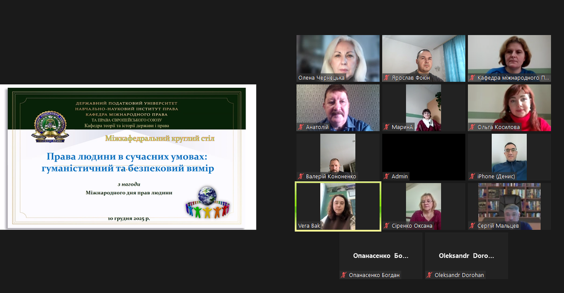 10 грудня 2025 р. кафедрою міжнародного права та права Європейського Союзу та кафедрою теорії та історії держави і права Навчально-наукового інституту права проведений міжкафедральний круглий стіл з н...