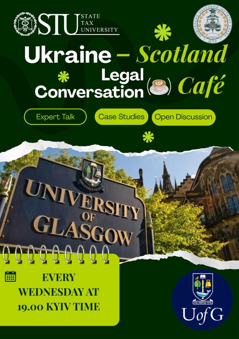 The Educational and Scientific Institute of Law of the State Tax University invites law students to participate in the international initiative Ukraine–Scotland Legal Conversation Café. UKR–SCO Legal...