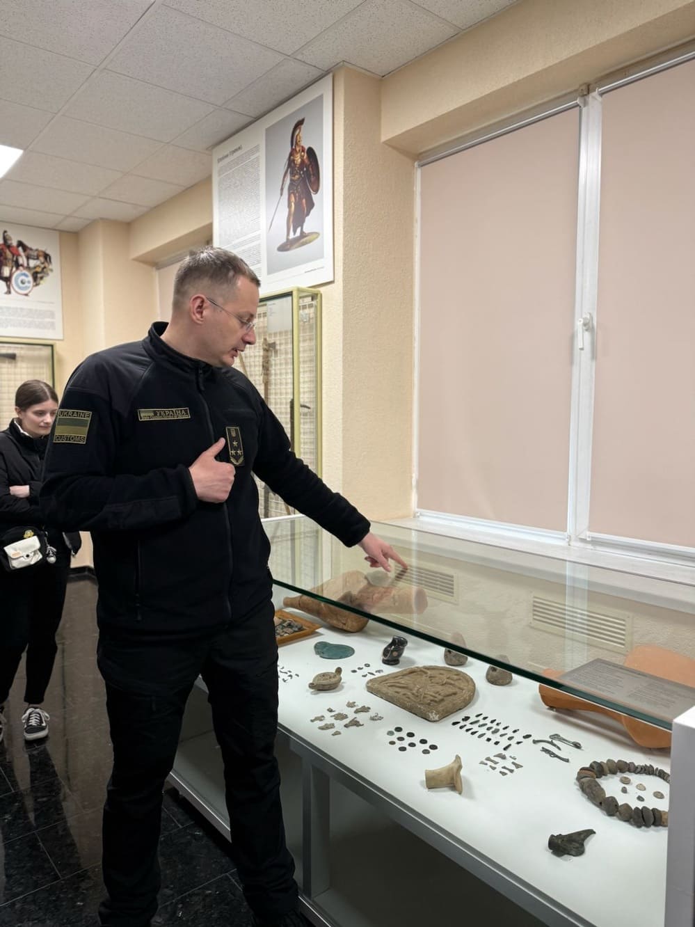 Заступник начальника Київської митниці Олексій Дірочка провів змістовну екскурсію експозицією Музею митної справи України. У ході огляду було висвітлено етапи становлення та розвитку зовнішньоторговельної діяльності і митної справи на Київщині в період з IV по XVI століття.