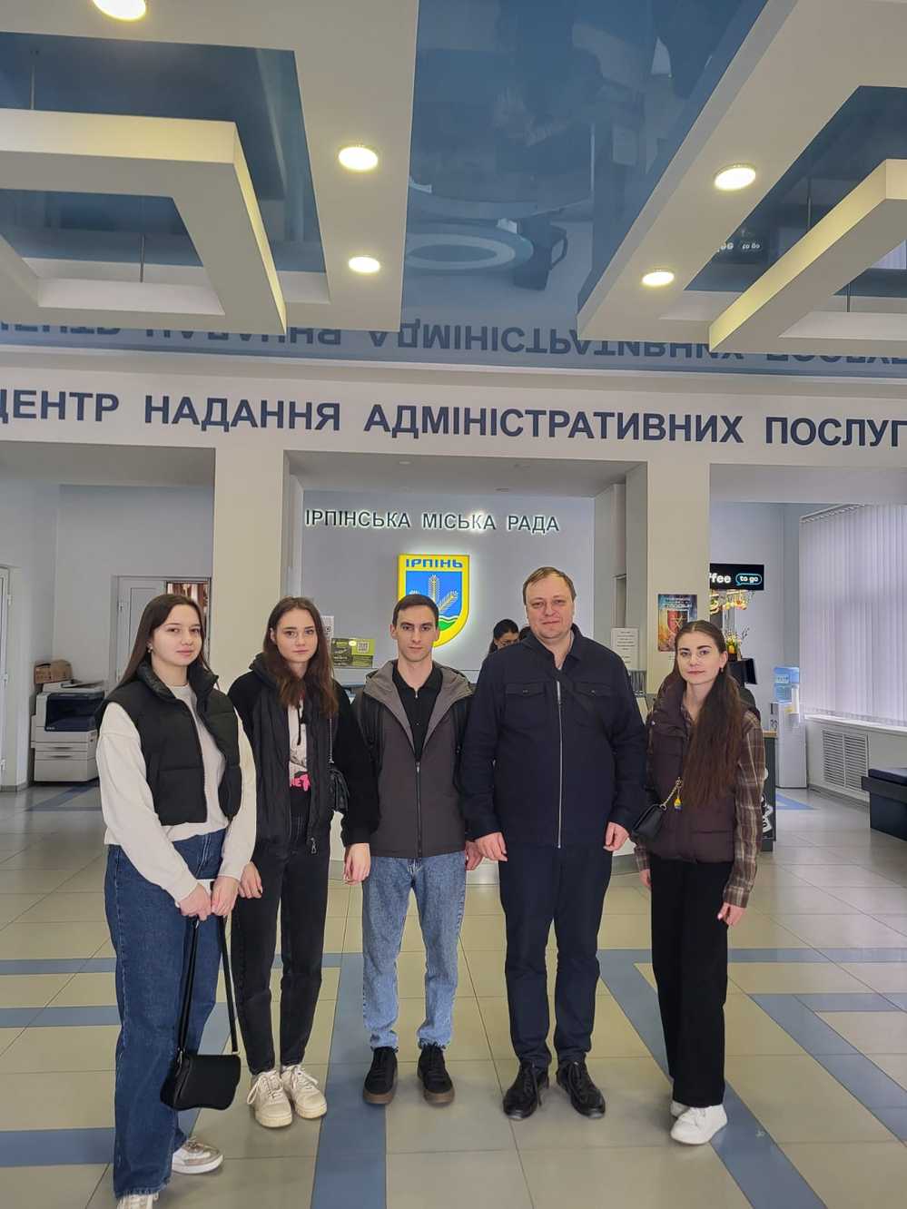 17 квітня 2026 року студенти групи ПБМБ-23-1 разом із завідувачем кафедри адміністративного права, процесу та митної безпеки здійснили навчальний візит до Центр надання адміністративних послуг та ведення реєстру територіальної громади Ірпінської міської ради.