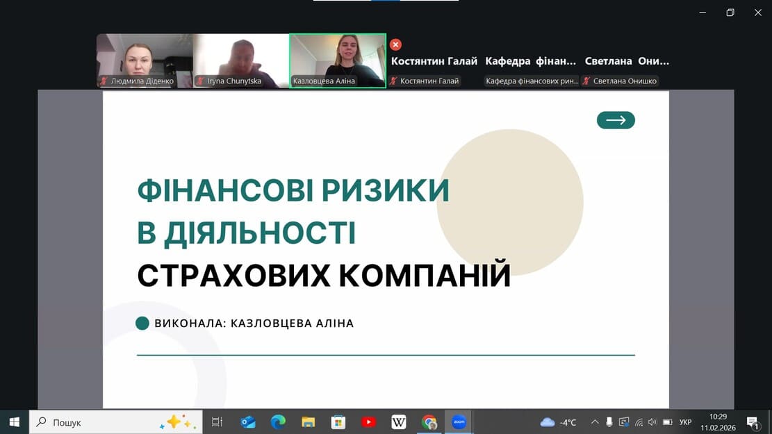 У період з 05 по 11 лютого 2026 року на кафедрі фінансових ринків та технологій відбулися захисти кваліфікаційних робіт здобувачами вищої освіти другого (магістерського) рівня денної та заочної форм навчання за освітніми програмами: «Фінансові технології» (гарант – к-т екон. наук, доцент Наталія Козій) і «Управління фінансовою та страховою діяльністю» (гарант – д-р екон. наук, професор Ірина Чуницька).
