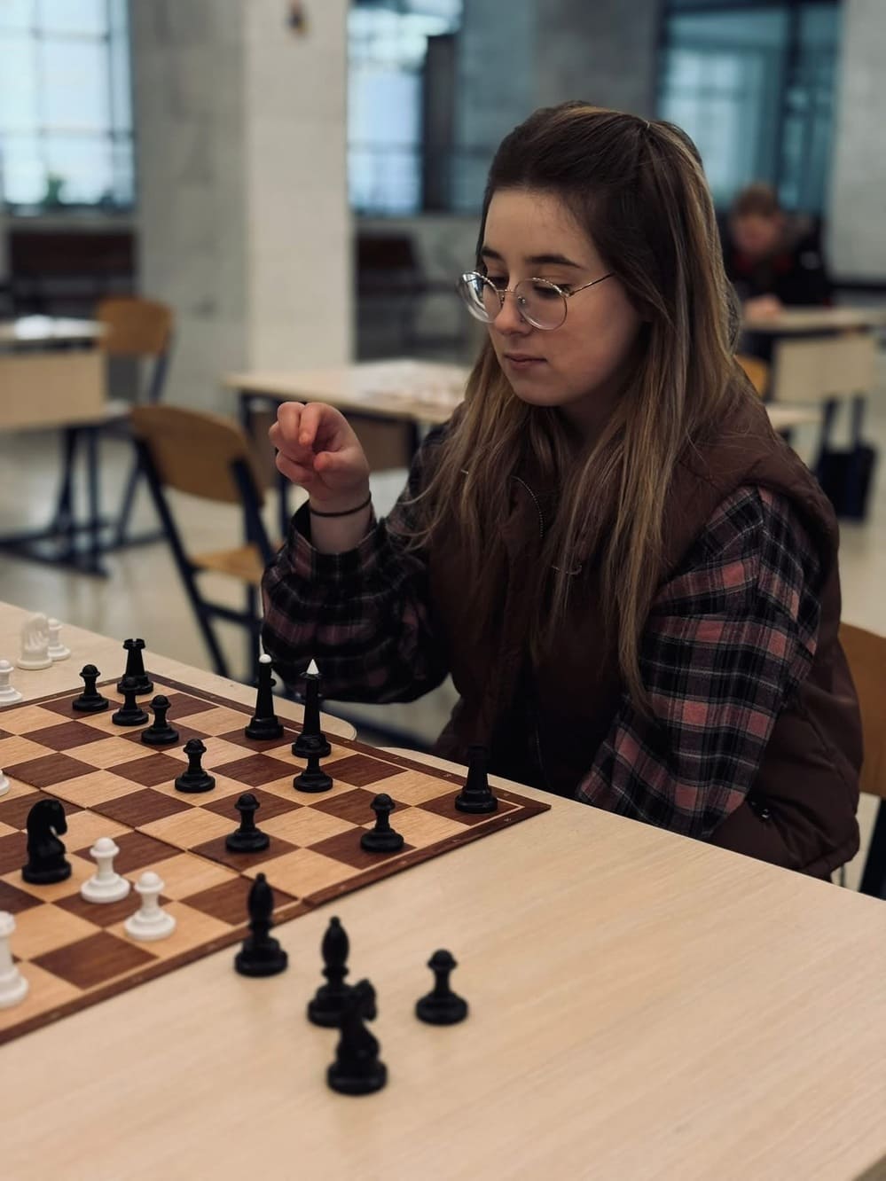 Особливо приємно відзначити нашу студентку — Олександру Позур, група ФЛБ-24-1 (спеціальність «Філологія»), яка продемонструвала блискучу гру та виборола 2 місце, здобувши кубок і срібну медаль!