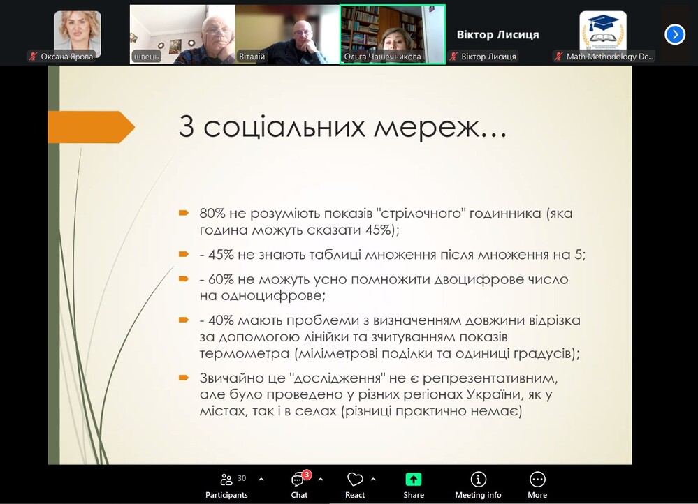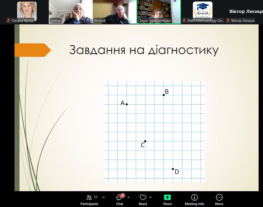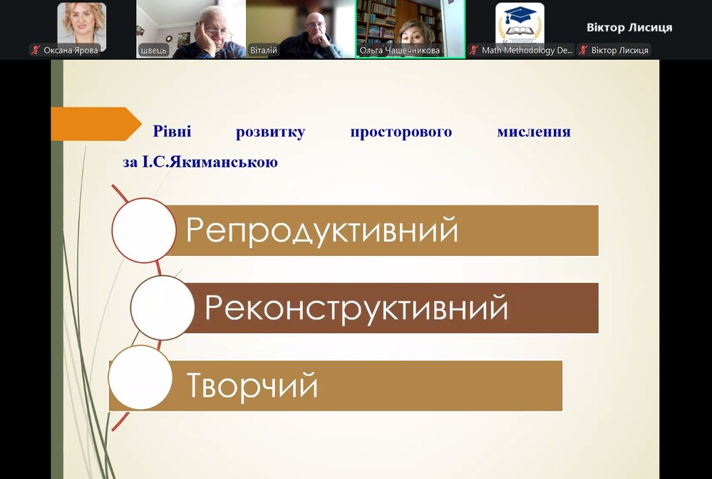 Під час виступу було розглянуто сучасні підходи до формування просторового мислення учнів; роль геометрії та візуалізації в освітньому процесі; вплив цифрових технологій на розвиток математичних компетентностей; методичні стратегії активізації пізнавальної діяльності здобувачів освіти.