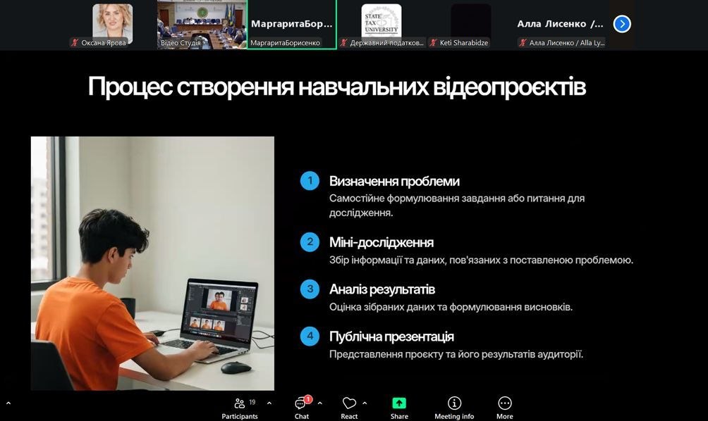 19 березня 2026 року на кафедрі вищої та прикладної математики факультету фінансів та цифрових технологій Державного податкового університету відбулася гостьова лекція на тему «Формування дослідницьких умінь учнів у процесі створення відеопроєктів з математики».