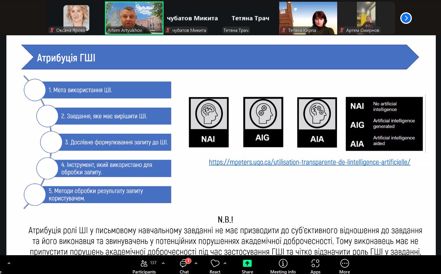 Спікер акцентував увагу на ризиках, пов’язаних із порушенням академічної доброчесності, а також поділився практичними рекомендаціями щодо відповідального використання сучасних інтелектуальних технологій.