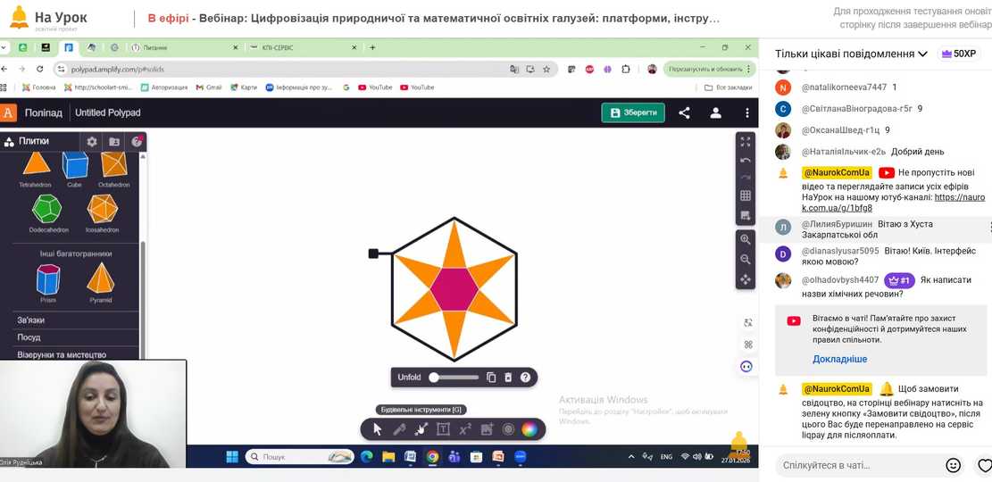 Спікеркою заходу виступила Юлія Рудніцька, яка ознайомила учасників із сучасними цифровими платформами та інструментами, що сприяють підвищенню наочності, інтерактивності та мотивації здобувачів освіти під час вивчення математики й природничих дисциплін.