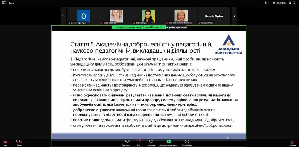 07 квітня 2026 року відбувся вебінар на тему «Освітній процес у світлі нових вимог Закону України «Про академічну доброчесність»