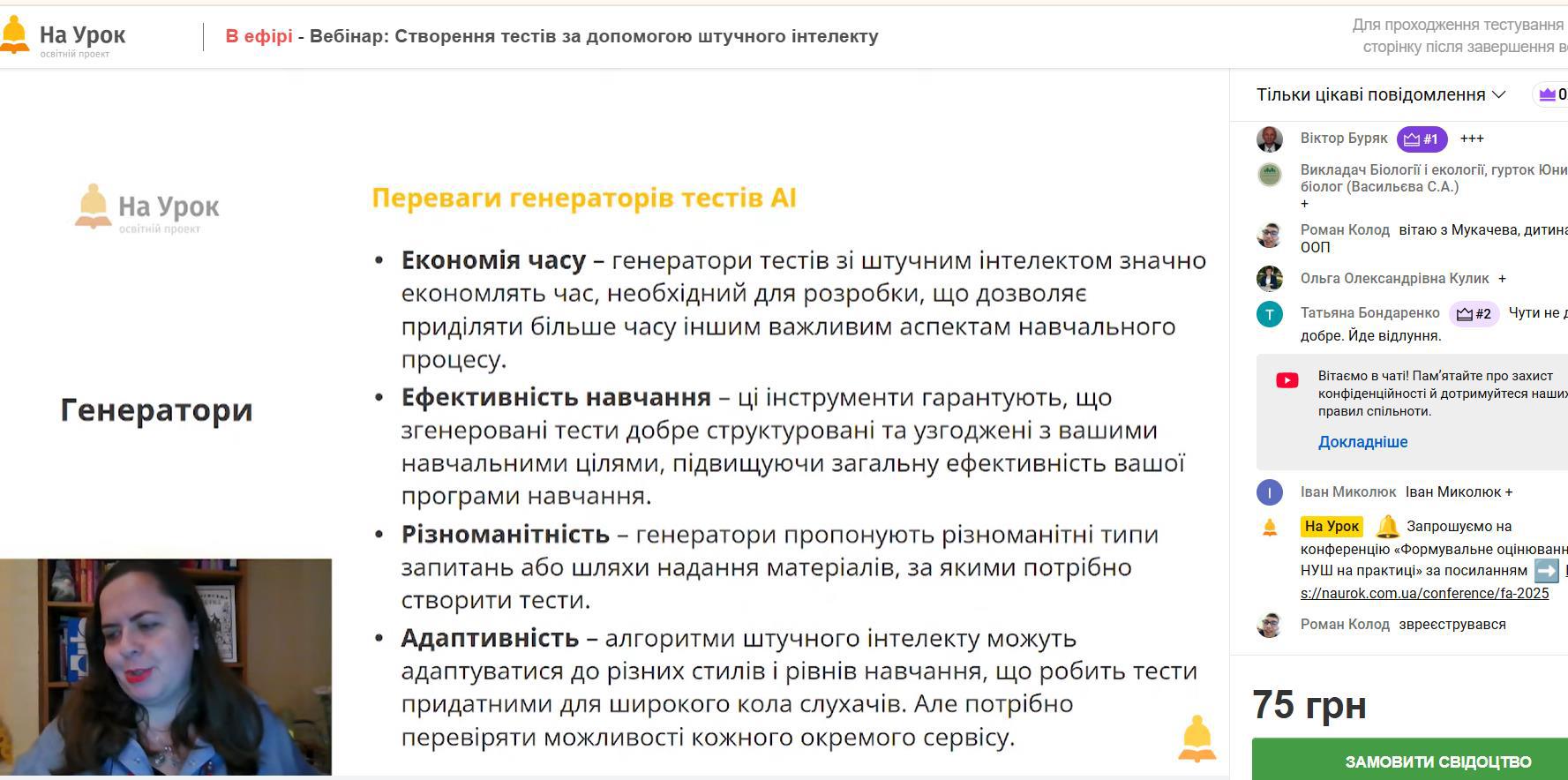 Учасники вебінару дізналися, як ефективно працювати з популярними інструментами штучного інтелекту для створення тестів різних форматів, розглянули приклади адаптації завдань до потреб учнівського колективу та проаналізували можливості інтеграції ШІ у щоденну педагогічну практику.