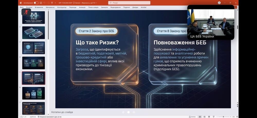 17 квітня 2026 року відбулося засідання Міжвідомчої робочої групи з оцінювання ризиків у сфері економіки, організоване Бюро економічної безпеки України. Група, створена у жовтні 2025 року, покликана забезпечити системний підхід до виявлення та аналізу ризиків економічних правопорушень.