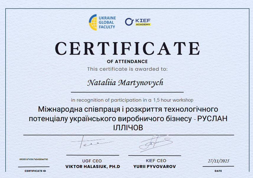 У сучасних умовах трансформації вищої освіти підвищення кваліфікації науково-педагогічних працівників є не просто рекомендацією, а вимогою стандартів освіти та критерієм Національного агентства із забезпечення якості вищої освіти, адже, оновлення професійних компетентностей, опанування цифрових інструментів і нових підходів до навчання й досліджень стає запорукою якості освітнього процесу й академічної доброчесності. З огляду на що, протягом першого семестру 2025-2026 н.р., науково-педагогічні працівники кафедри менеджменту та публічного управління долучались до різних заходів.