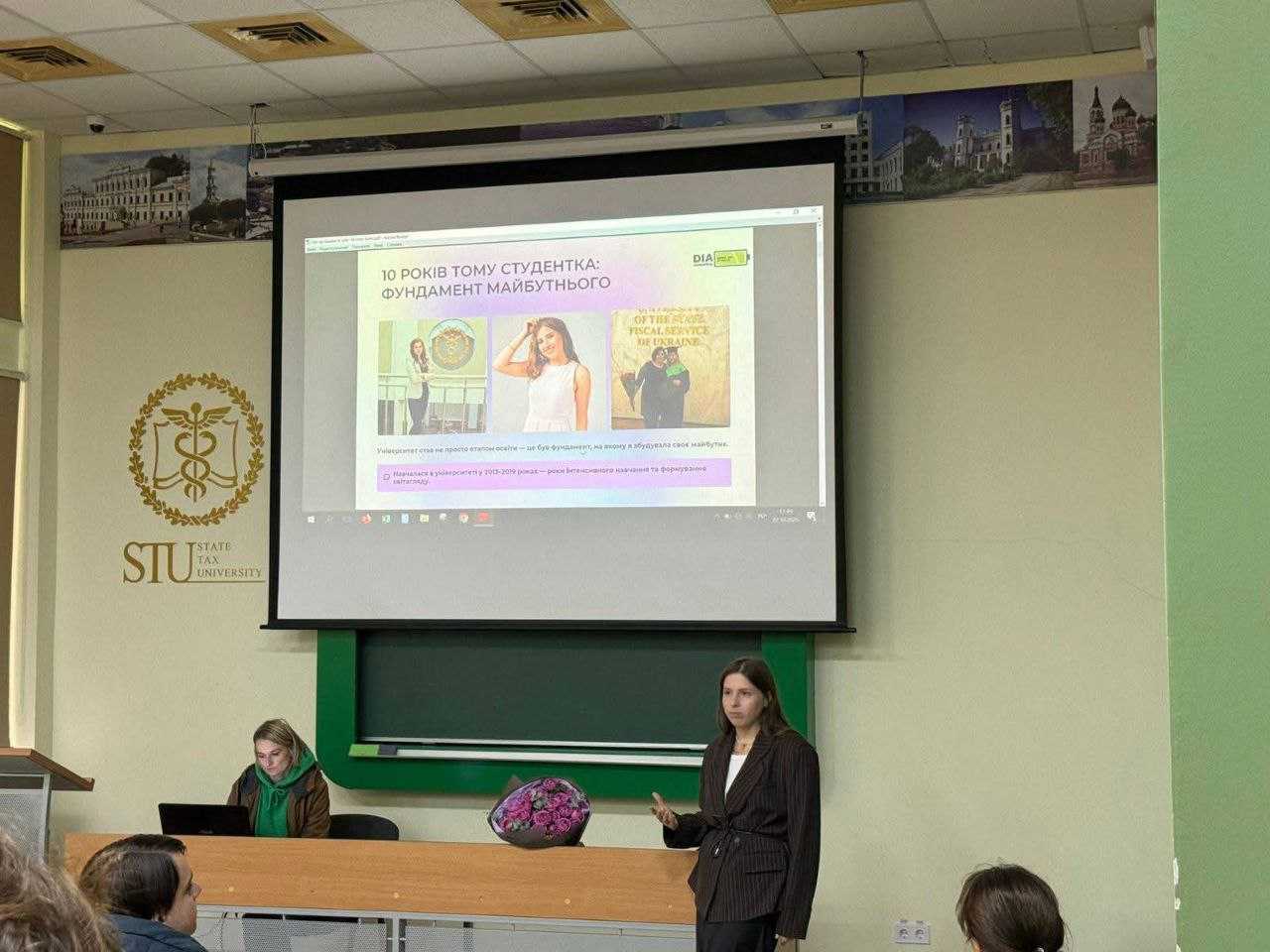 Під час зустрічі лекторка поділилася власним професійним шляхом, розповіла про ключові рішення, які вплинули на її кар’єру, та наголосила на важливості постійного саморозвитку, впевненості у власних силах і вмінні використовувати можливості, що надає життя.