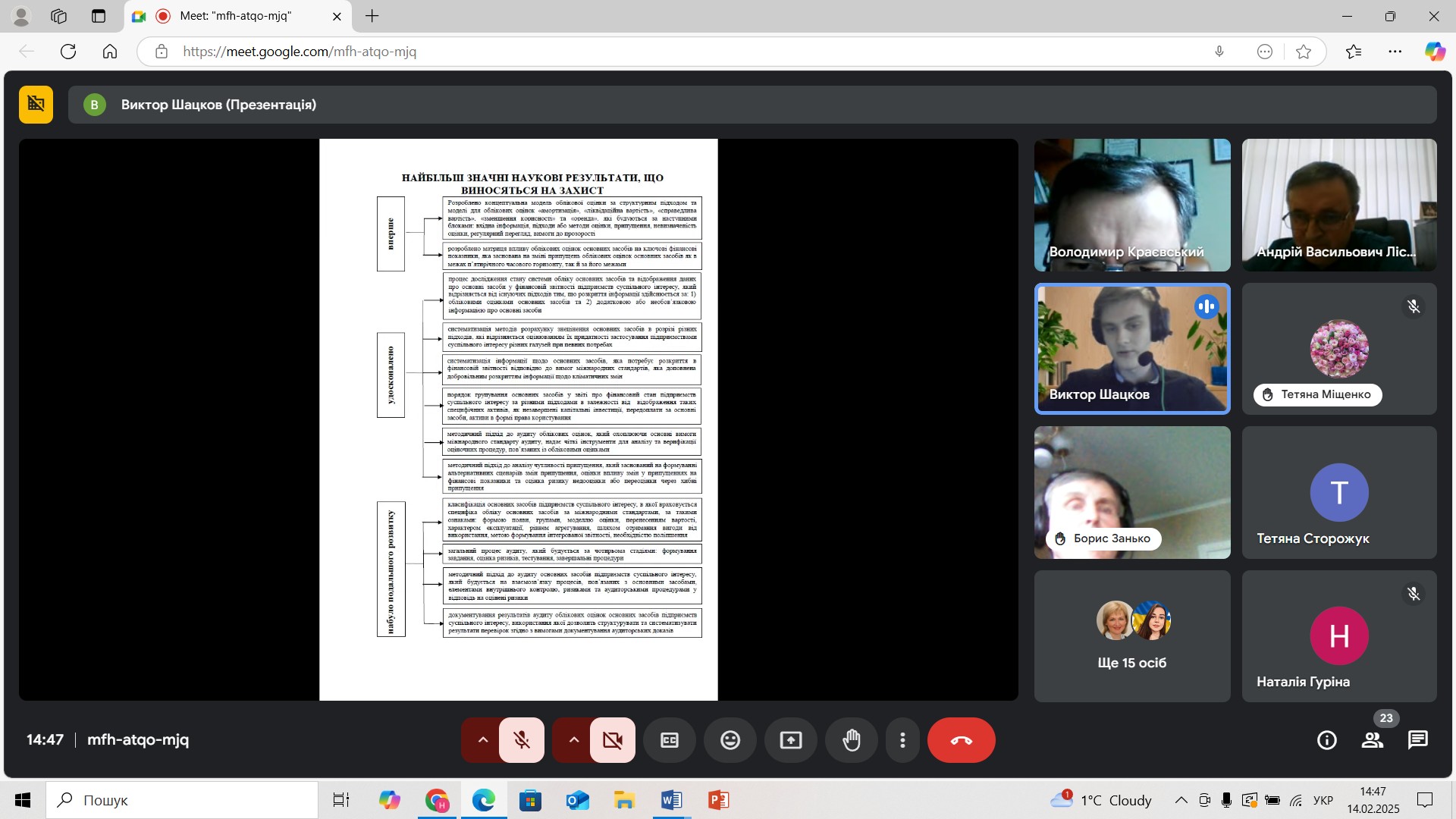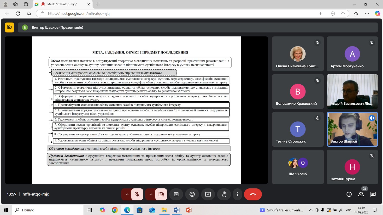 14 лютого 2025 року на кафедрі обліку та аудиту відбувся фаховий семінар, на якому розглянуто результати дисертаційного дослідження на тему: «Облік та аудит основних засобів підприємств суспільного інтересу» аспіранта Шацкова Віктора Володимировича (на здобуття наукового ступеня доктора філософії у галузі знань «Управління та адміністрування» зі спеціальності «Облік і оподаткування»).