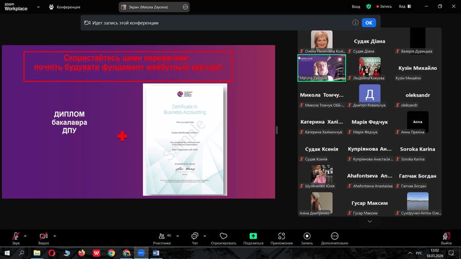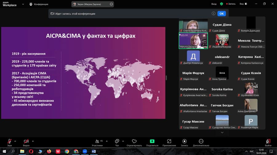 18 березня 2026 року кафедрою обліку та аудиту була організована зустріч із Зайцевою Мариною Анатоліївною — координаторкою освітніх проєктів СІМА.