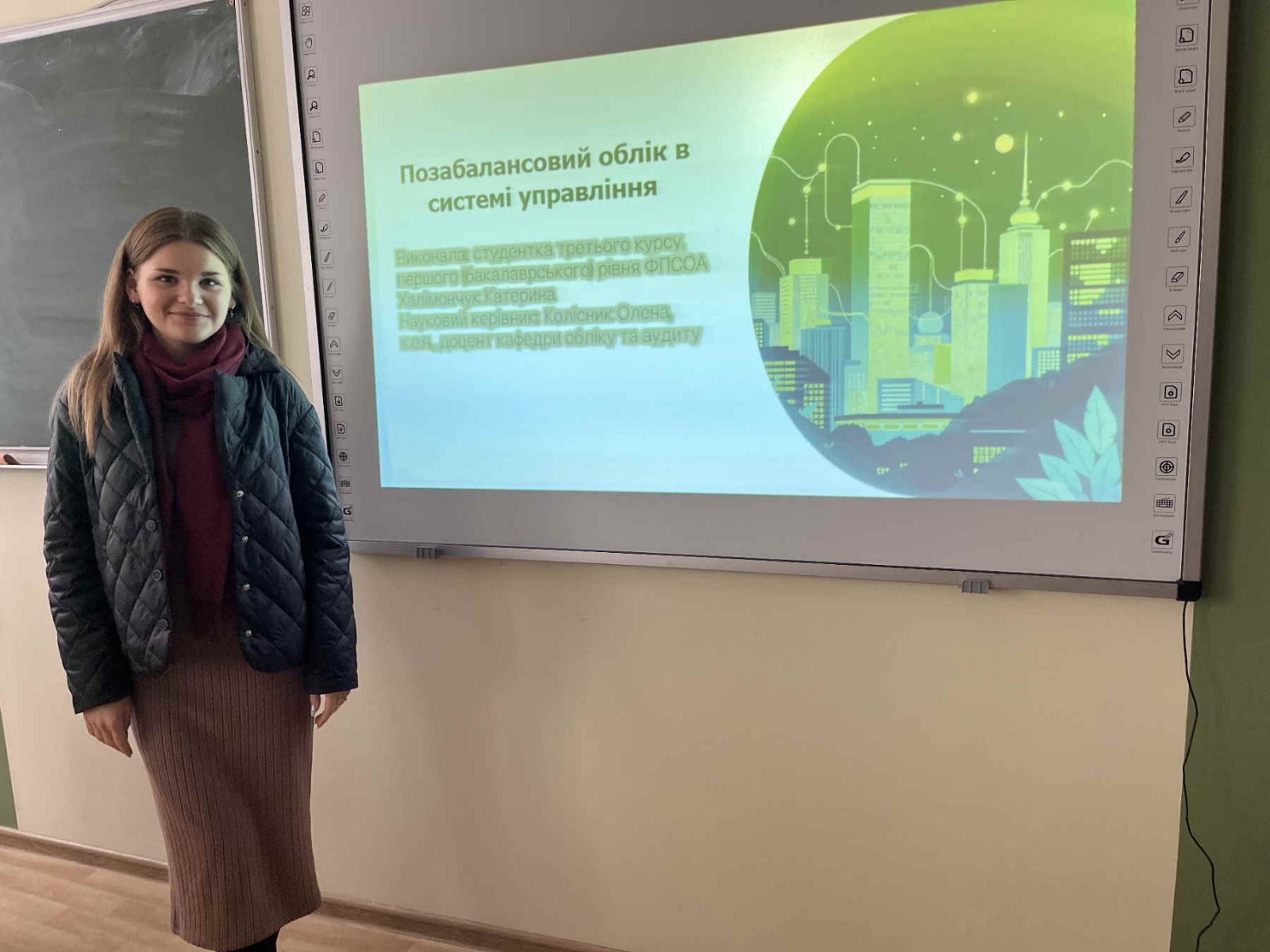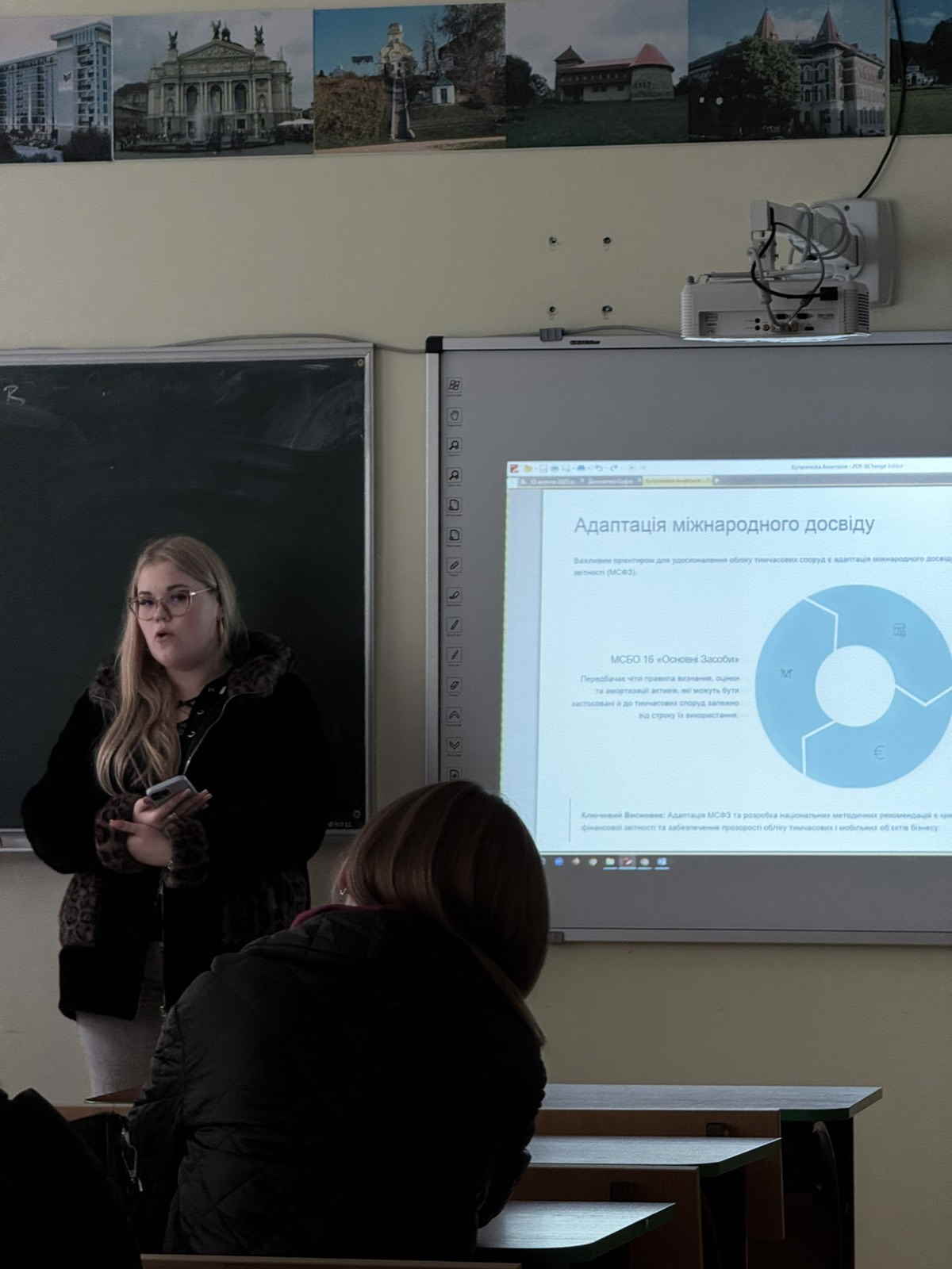 Серед студентів четвертого курсу виступила Коваль Софія з доповіддю «Проблеми та переваги впровадження МСФЗ на підприємствах малого та середнього бізнесу», у якій окреслила ключові труднощі адаптації міжнародних стандартів фінансової звітності в українських реаліях.