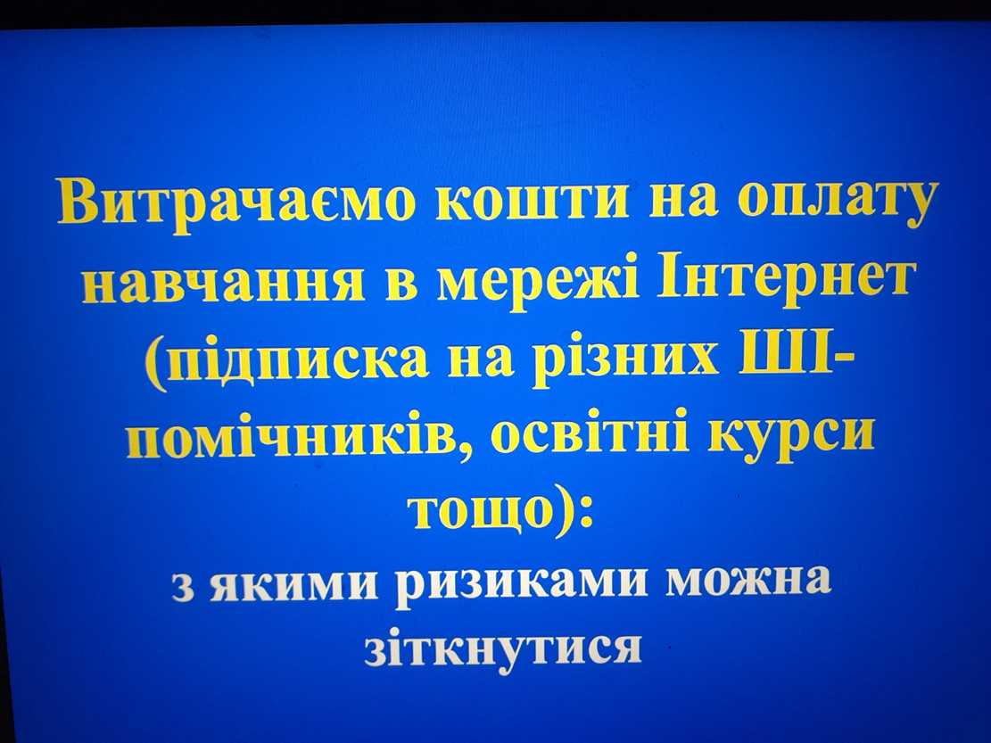 Під час заходу учні ознайомилися з основними принципами особистого фінансового планування, інструментами збереження та примноження коштів, а також із сучасними підходами до формування фінансової безпеки. Особливу увагу було приділено питанням раціонального використання ресурсів, уникнення фінансових ризиків і розвитку відповідального ставлення до власного бюджету.
