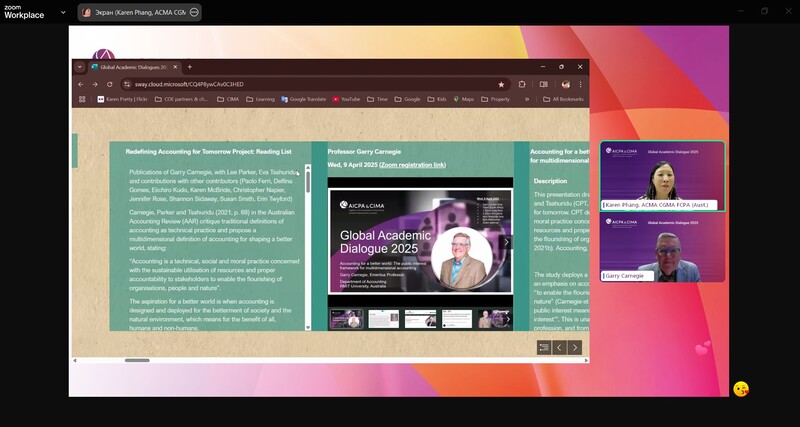 09 квітня 2025 року професорсько-викладацький склад кафедри та здобувачі вищої освіти третього (освітньо-наукового) рівня, які навчаються за ОНП «Облік і оподаткування», взяли участь у черговому онлайн-заході Global Academic Dialogue 2025, організованому AICPA та CIMA.