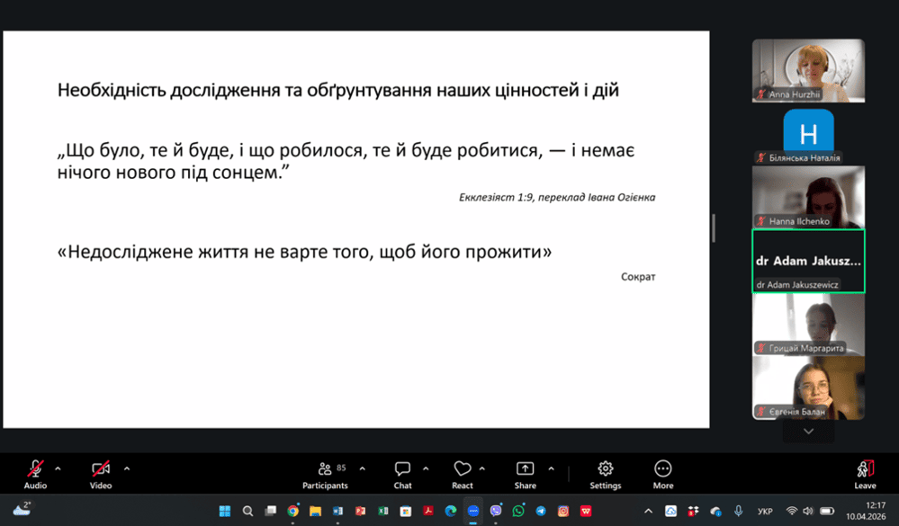 Окрему увагу приділено важливості критичного осмислення власних переконань і рішень. У цьому контексті було згадано класичні філософські підходи, зокрема ідею про цінність «дослідженого життя», а також підкреслено незмінну актуальність фундаментальних питань людського існування.