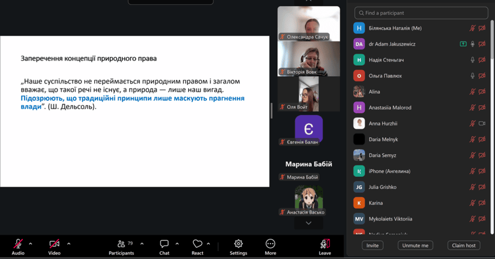 У центрі дискусії постало питання універсальності прав людини та ризиків їх інструменталізації в сучасному публічному просторі. На прикладах актуальних дебатів було продемонстровано, як апеляція до прав людини може набувати суперечливих і навіть парадоксальних форм.