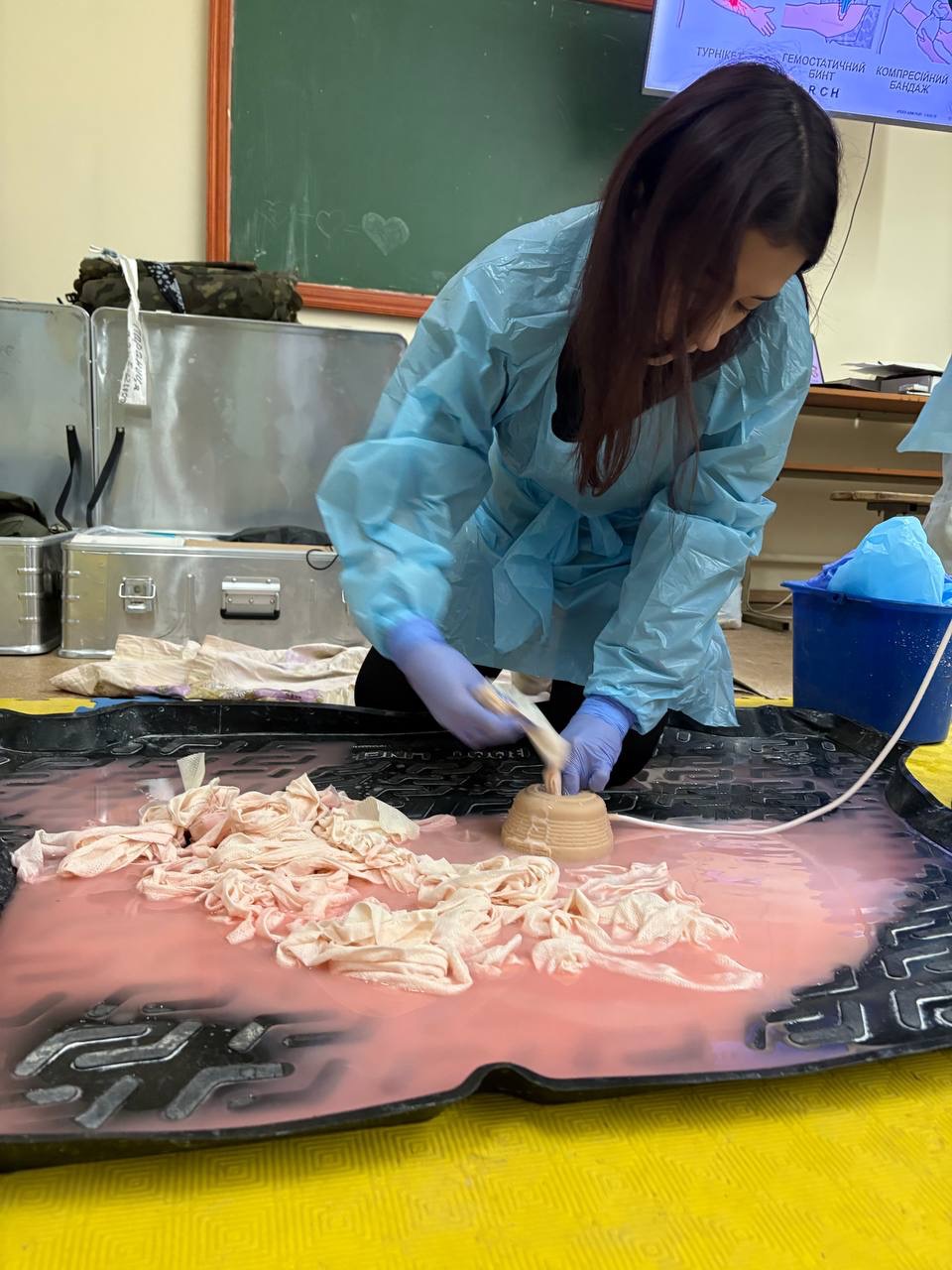 Студенти відпрацьовували застосування турнікетів, техніку тампонування ран, прямий тиск на джерело кровотечі. Заняття включають як лекційні, так і практичні модулі, під час яких майбутні фахівці відпрацьовують алгоритми дій у змодельованих надзвичайних ситуаціях.