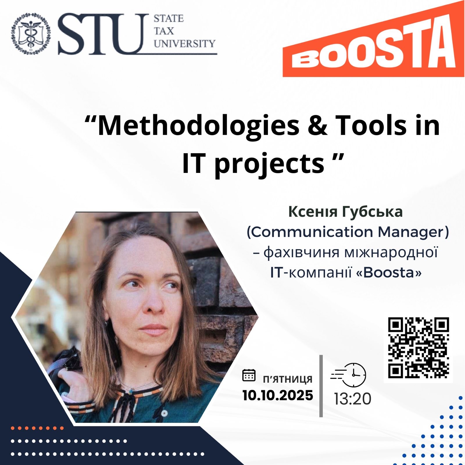 10 жовтня 2025 року о 13:20 відбудеться гостьова лекція/ менторська зустріч на тему «Methodologies and tools in IT projects».