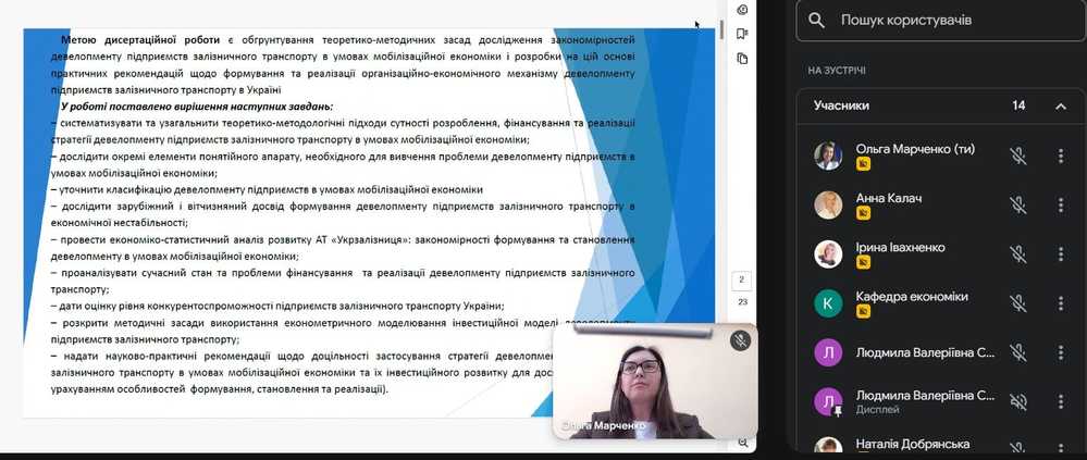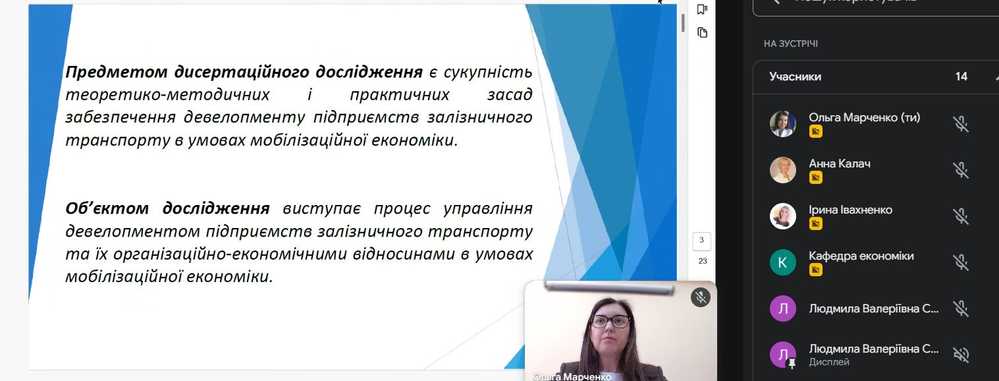 На засіданні кафедри управління та бізнес-адміністрування Державного податкового університету 20 квітня 2026 року було заслухано презентацію наукової новизни, теоретичного та практичного значення результатів дисертаційного дослідження Качковського Олександра Дмитровича на тему «Девелопмент підприємств залізничного транспорту в умовах мобілізаційної економіки», поданого на здобуття наукового ступеня доктора філософії за спеціальністю 051 «Економіка», галузь знань 05 «Соціальні та поведінкові науки».