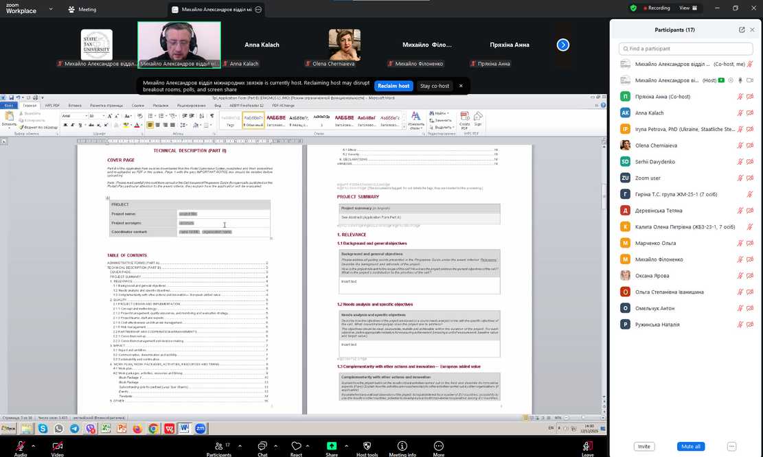 12 грудня на платформі ZOOM відділом міжнародних зв’язків була проведена лекція на тему «Процес формування грантової заявки Erasmus+ Jean Monnet». Покроково було розглянуто процес формування грантової заявки за напрямами Jean Monnet Модуль та Jean Monnet Кафедра.