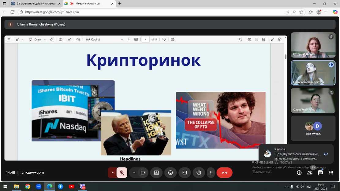 28 листопада 2025 року відбулася гостьова лекція менеджера взаємодії з європейськими інституціями Групи Компаній Reply Юліанни Романчишиної на тему «Регулювання ринку криптовалют в глобальному контексті».