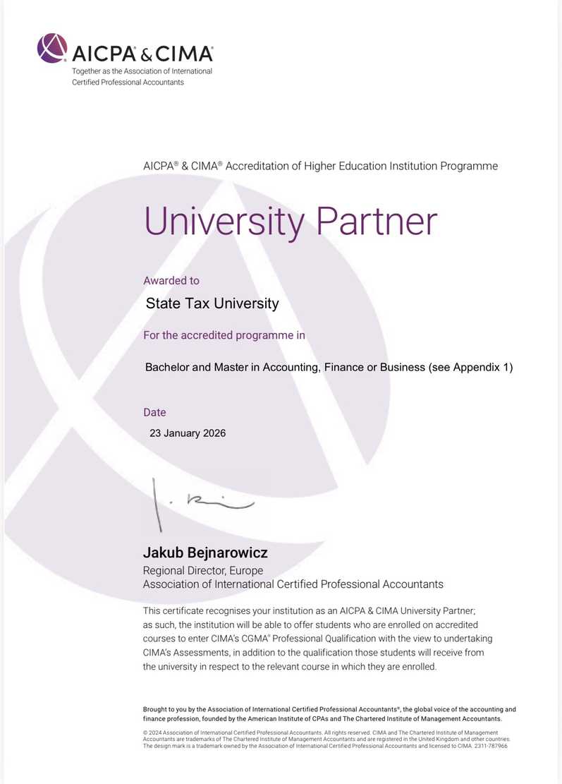Партнерство з AICPA & CIMA сприяє подальшому розвитку спеціалізації з управлінського обліку та фінансового менеджменту.