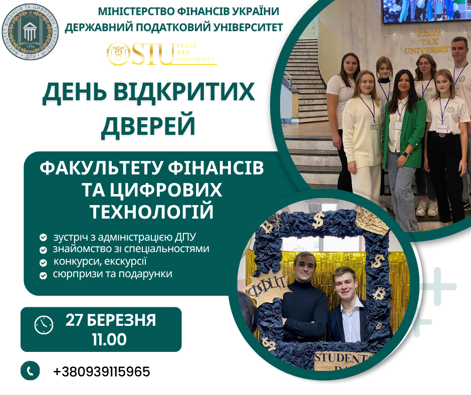 Мрієш про престижну професію у сфері фінансів та ІТ? Запрошуємо тебе на знайомство з факультетом фінансів та цифрових технологій Державного податкового університету!