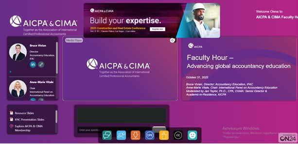31 жовтня 2025 року канд. екон. наук, доцент кафедри обліку та аудиту Колісник О.П. взяла участь у професійному заході AICPA & CIMA Faculty Hour на тему «Advancing Global Accountancy Education» .