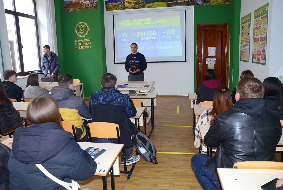 16 жовтня хол корпусу С Державного податкового університету перетворився на справжній простір професійних можливостей. Кар’єрна коуч-сесія «Професійний старт разом із ДПУ» зібрала студентів та представників провідних державних установ і бізнес-компаній, серед яких Міністерство фінансів України, Державна податкова служба, Рахункова палата, Антимонопольний комітет, Укрзалізниця, ДТЕК, Ощадбанк, Райффайзен Банк, PwC, Baker Tilly, OTP Bank та інші партнери університету.
