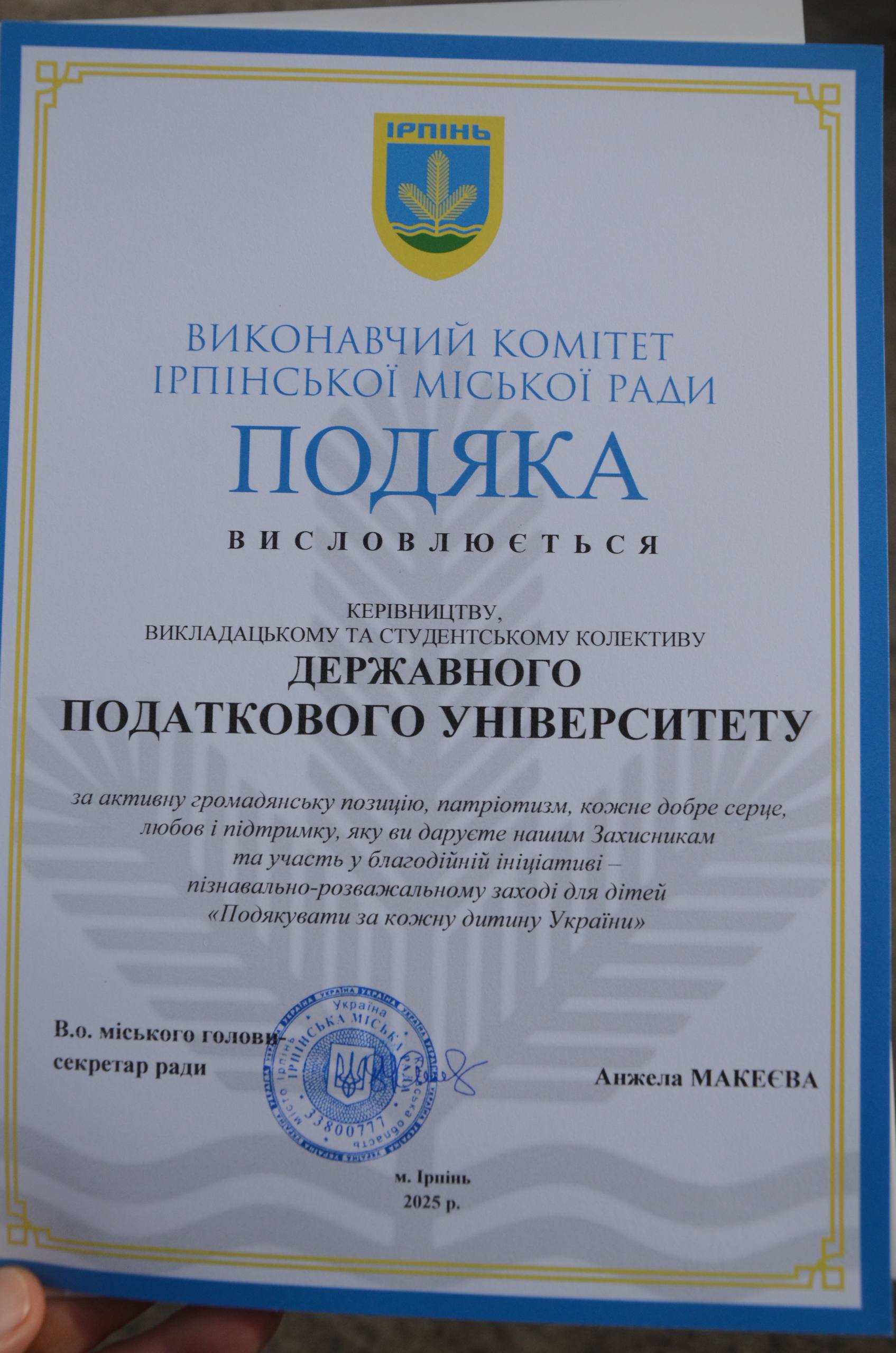 Варто зазначити, що за активну участь у підготовці та проведенні свята керівництво, викладацький та студентський колектив ДПУ отримали Подяку від Ірпінської міської ради.