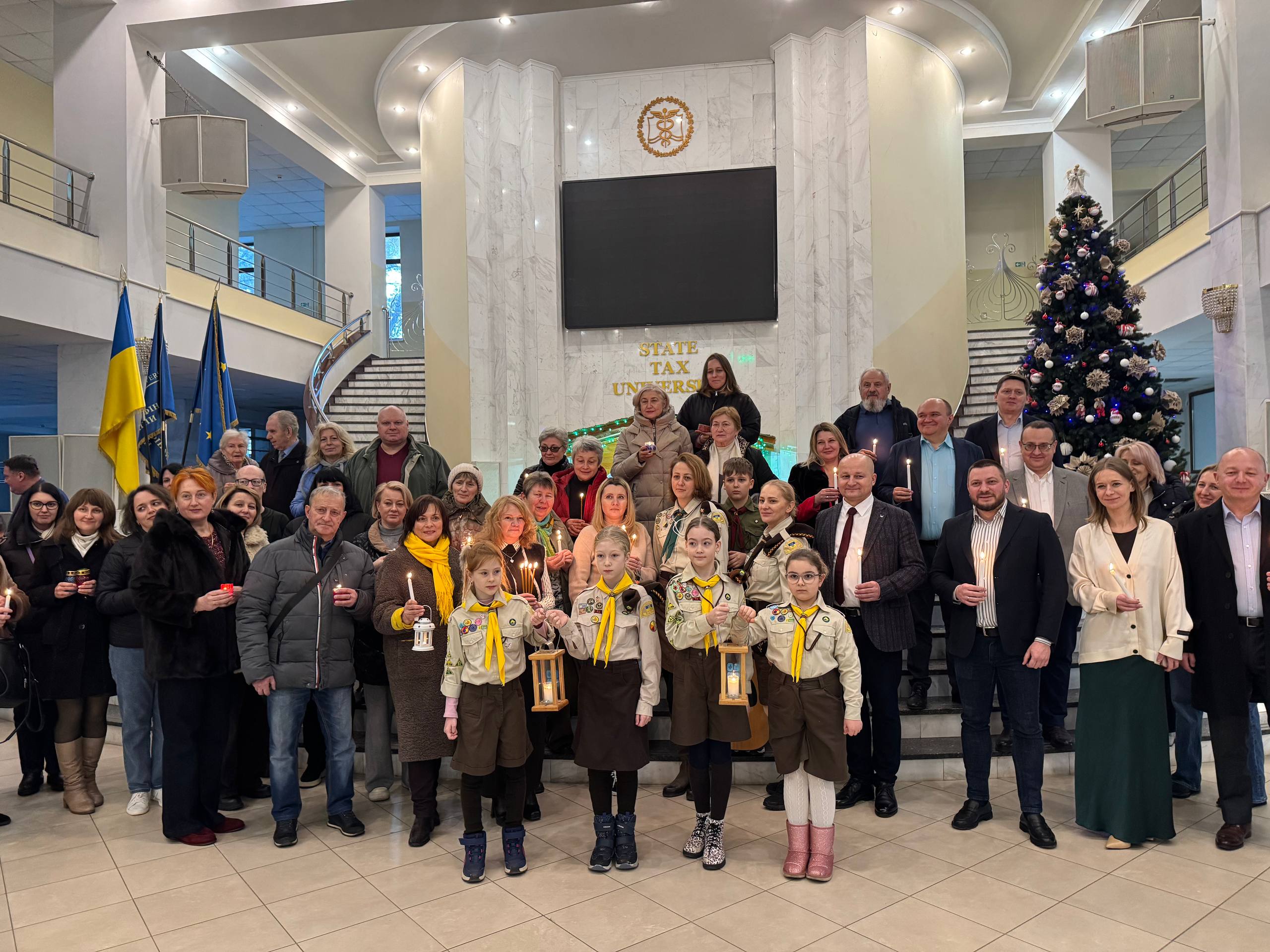 Напередодні Різдва до Державного податкового університету завітали представники пластової станиці Ірпеня, щоб передати Вифлеємський вогонь миру — символ світла, єдності та надії, який мандрує світом.