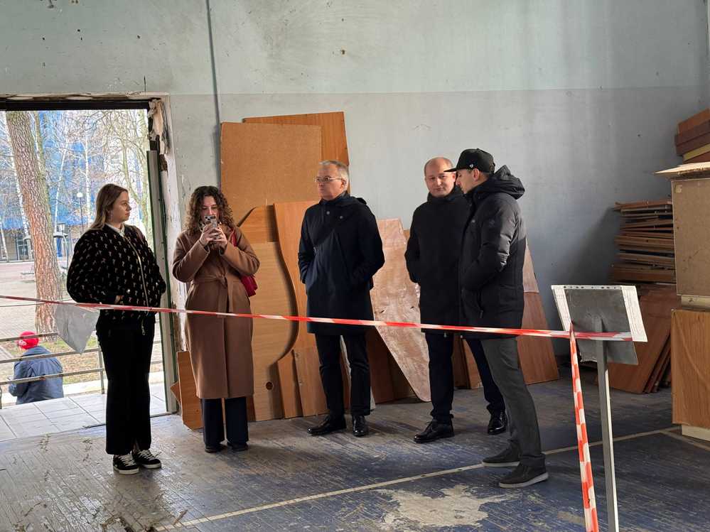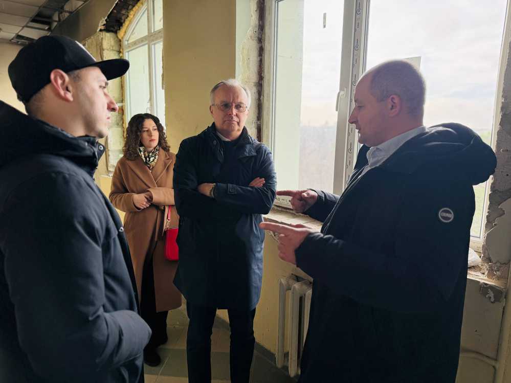 Візит розпочався з оглядової екскурсії територією університету. В.о. ректора ДПУ Дмитро Серебрянський зустрів гостей та презентував навчальний заклад, розповів про масштаб руйнувань, яких він зазнав під час окупації міста у 2022 році та про процеси відновлення.