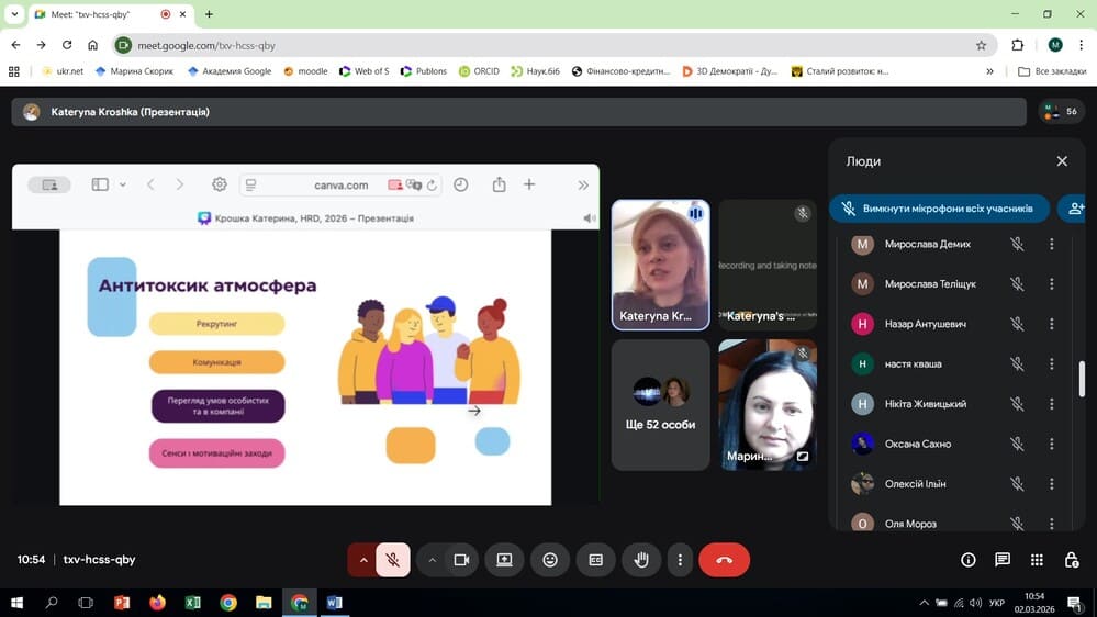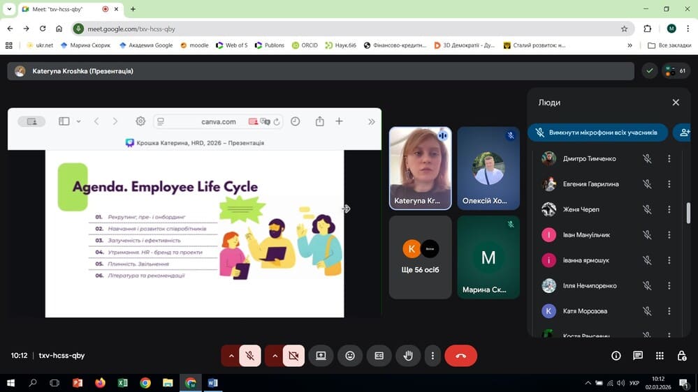 02 березня 2026 року відбулася гостьова онлайн-лекція на тему «Управління людським капіталом в невеликій компанії», організована Кафедрою економічної політики, маркетингу та бізнес-аналітики. Захід розпочався о 10:00 та об’єднав студентів, викладачів і всіх зацікавлених у сучасних підходах до управління персоналом.