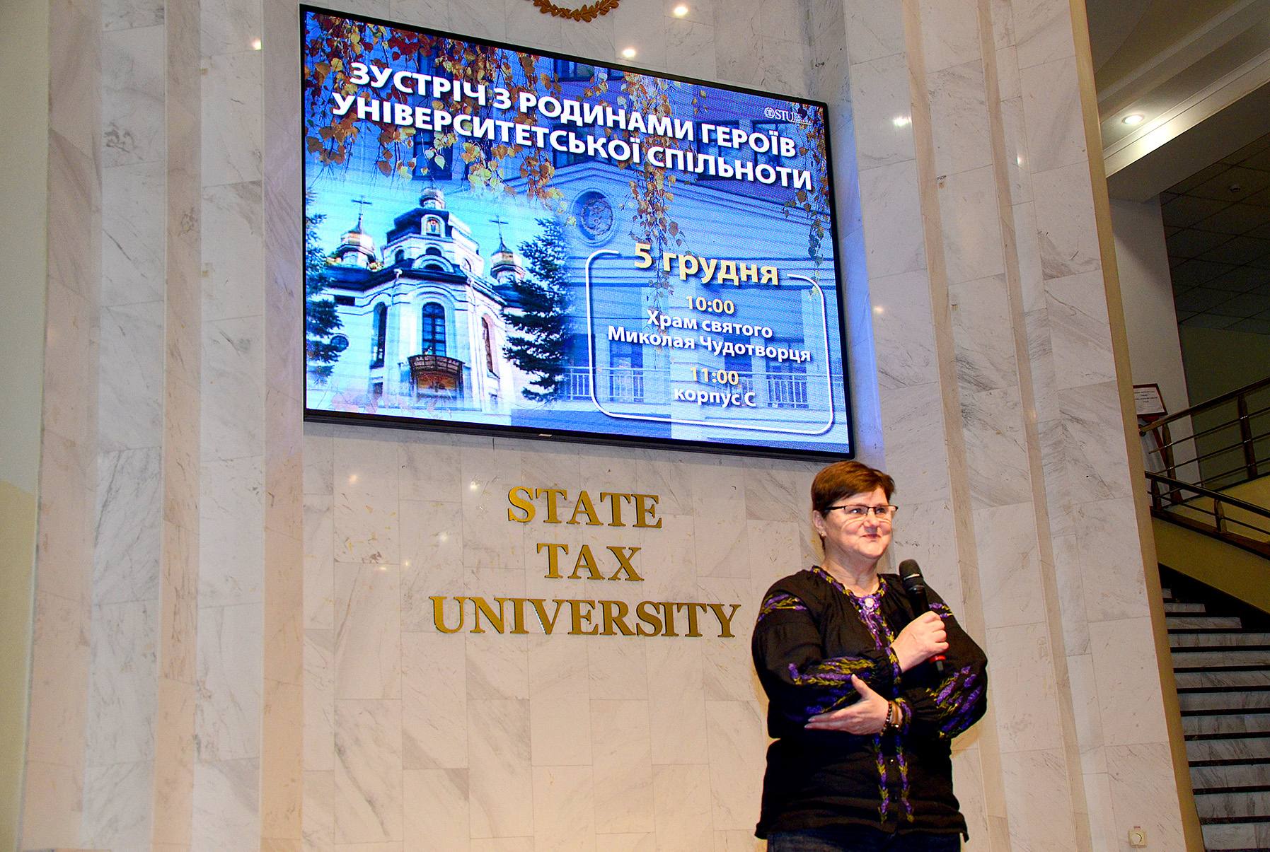 Під час зустрічі очільник університету представив і видання «Вартові світла: імена, викарбувані в пам’яті Державного податкового університету». Книга містить історії про кожного з наших героїв та покликана зберегти їхні імена в університетській пам’яті. Кожна родина отримала примірник особисто.