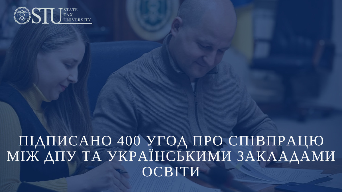 Партнери - заклади освіти все більше проявляють довіру до Державного податкового університету. Про це свідчать опредметнені наміри у допомозі українській молоді. Так, університет уклав 400 угод про співпрацю з різними закладами освіти за типами, формами та рівнями.