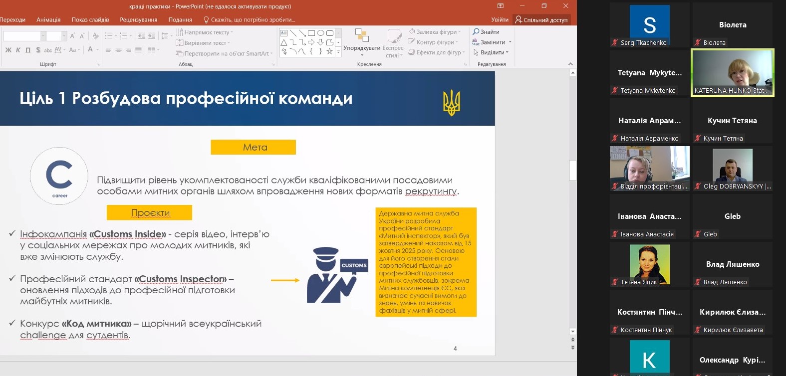 - Професійний стандарт: Детально розібрали вимоги до кваліфікації за стандартом «Інспектор митний». Студенти отримали чіткий чек-лист компетенцій, які очікує від них сучасний державний сектор.