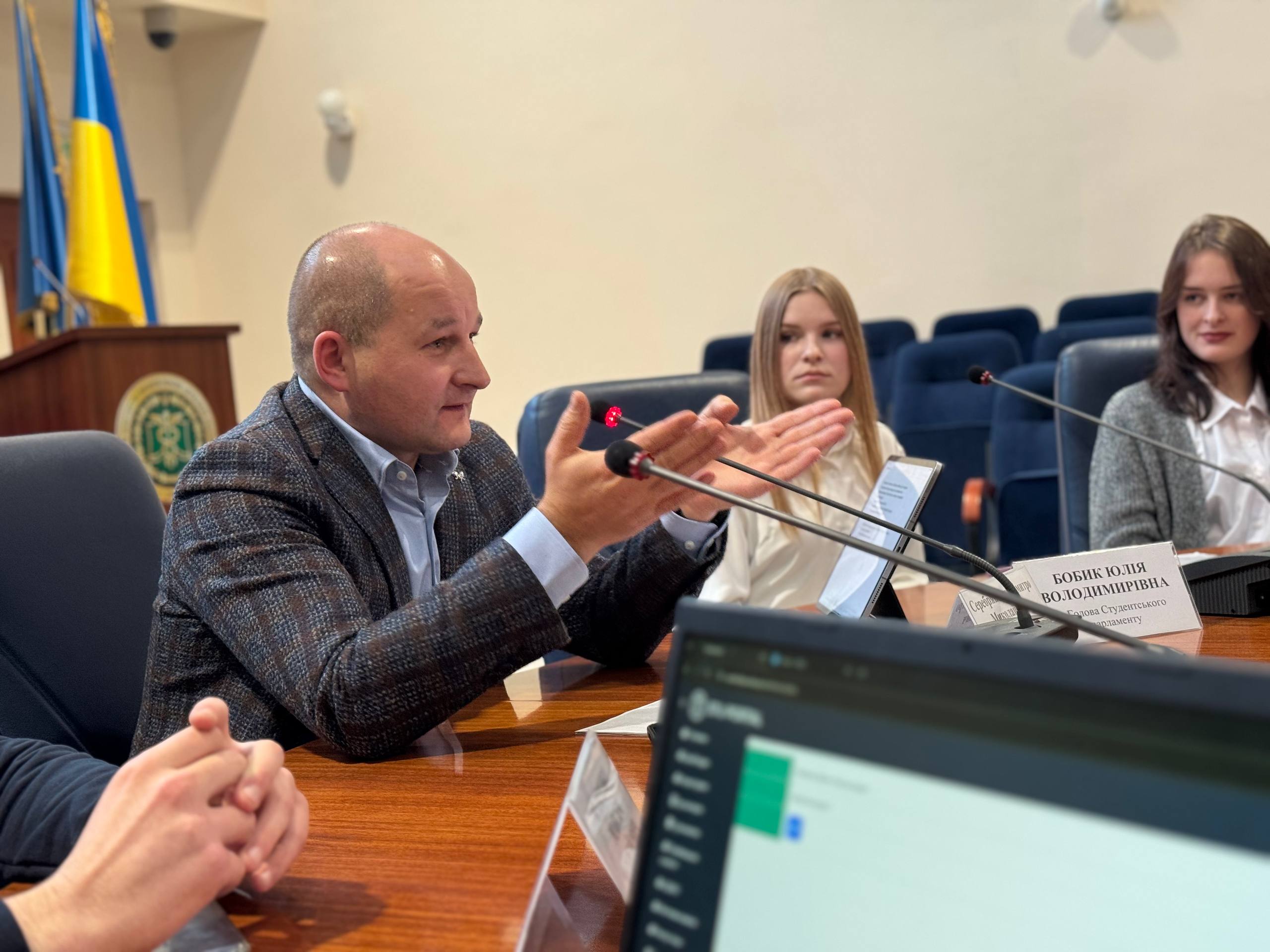 Під час дискусії пролунали й стратегічні теми щодо мотивації, вибіркових дисциплін та залучення студентів до управлінських процесів. Дмитро Серебрянський підкреслив, що завдання університету – не вирішити все за студентів, а створити середовище для їхньої ініціативності: «Ми не просто закриваємо питання. Ми хочемо, щоб ви бачили можливості й пропонували свої рішення».