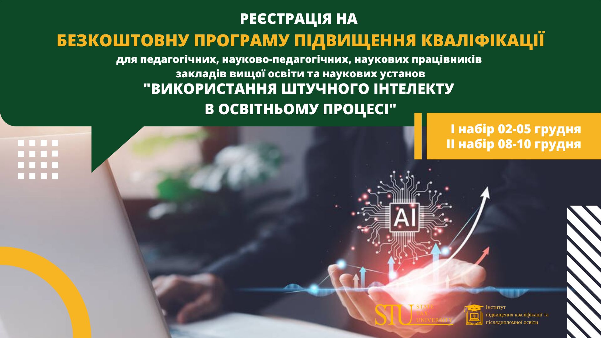 «Використання штучного інтелекту в освітньому процесі» для педагогічних, науково-педагогічних, наукових працівників закладів вищої освіти та наукових установ