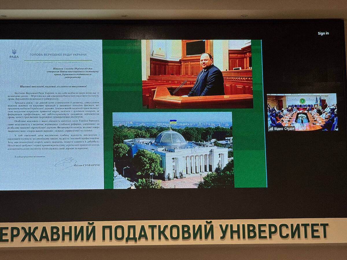 З вітальним словом до учасників звернувся в. о. ректора Державного податкового університету Дмитро Серебрянський: «Ми живемо у часи, коли освіта й наука мають бути не лише гнучкими й сучасними, а й здатними швидко включатися в процеси змін, бути конкурентними, мислити категоріями майбутнього. І саме таким є наш інститут права — з чудовими студентами, активними випускниками і сильними науковими традиціями».