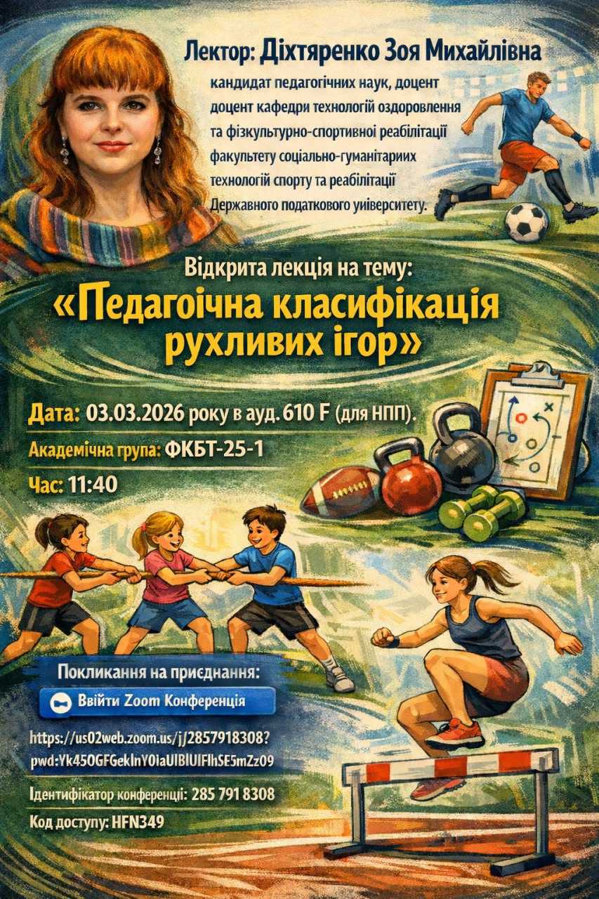 Кафедрою технологій оздоровлення та фізкультурно-спортивної реабілітації факультету соціально-гуманітарних технологій, спорту та реабілітації Державного податкового університету спільно з Відділенням...